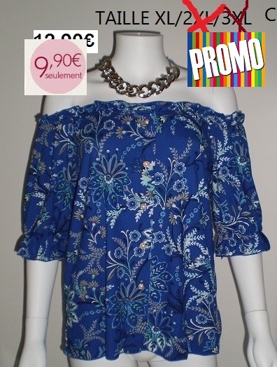 haut EPAULES NUES BLEU FLEURI TAILLE XL et 3XL
