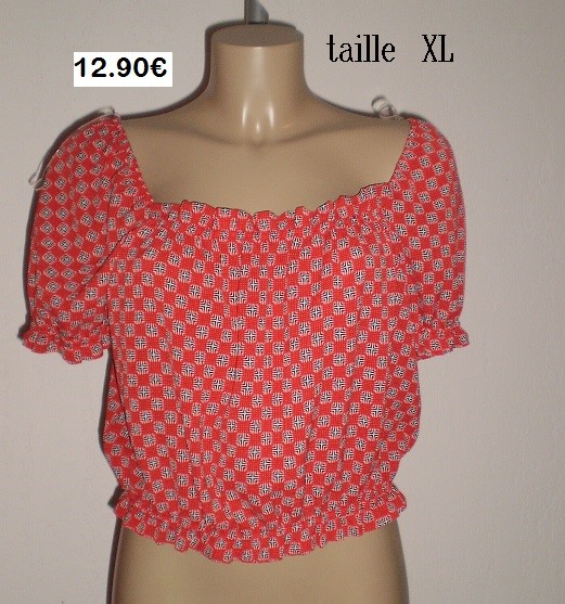 HAUT EPAULES NUES ROUGE PETIT CARREAUX TAILLE XL