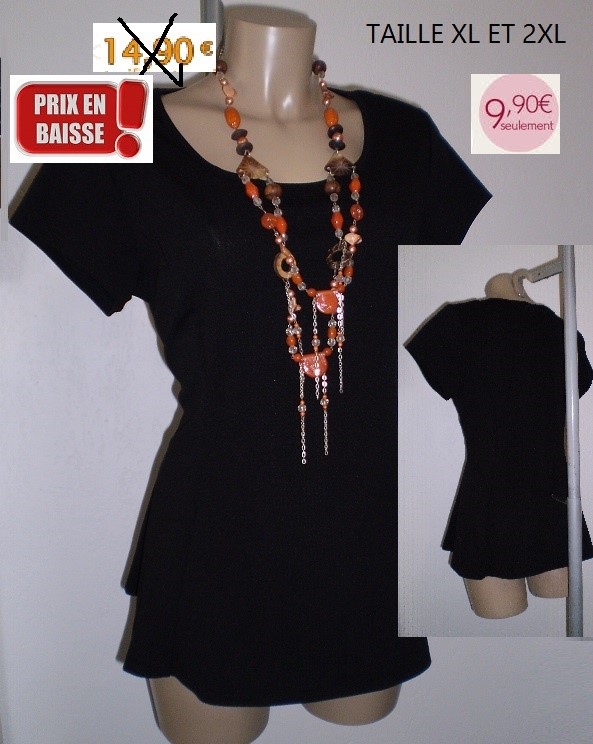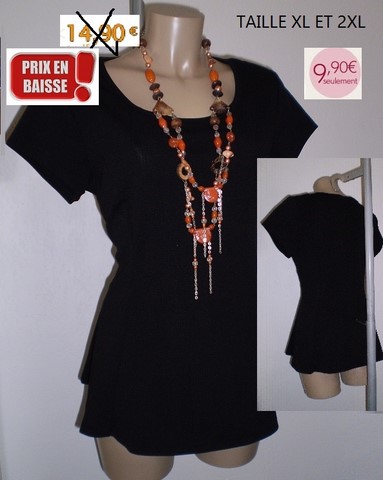 HAUT NOIR PETITES MANCHES TAILLE XL ET 2XL