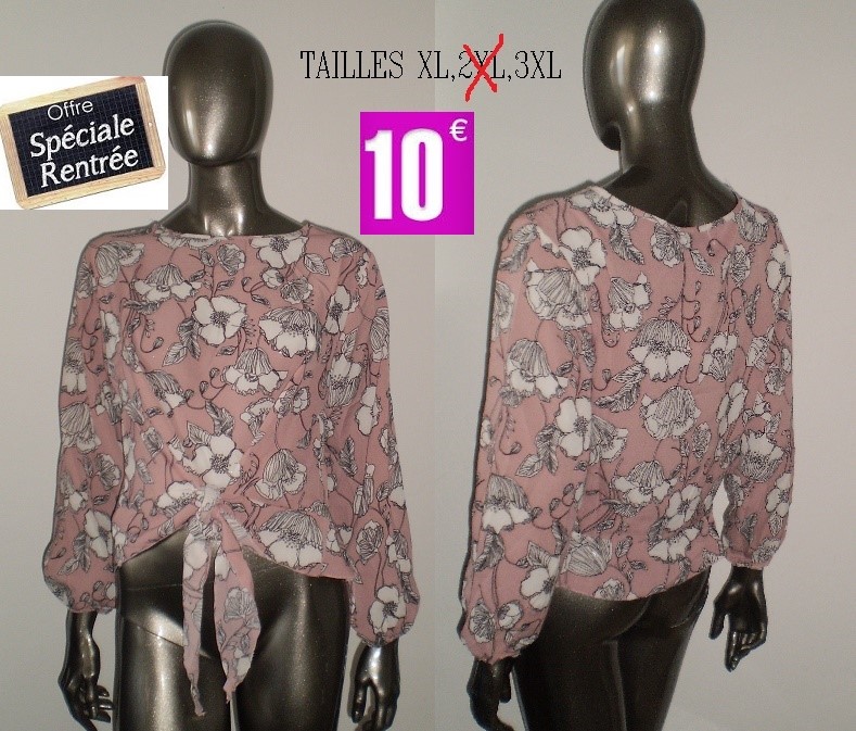 HAUT NOUE FOND ROSE TAILLE XL et 3XL