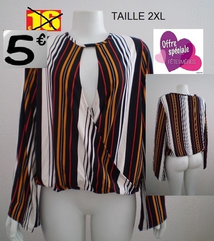HAUT RAYE CROISE FOND BLANC TAILLE 2XL