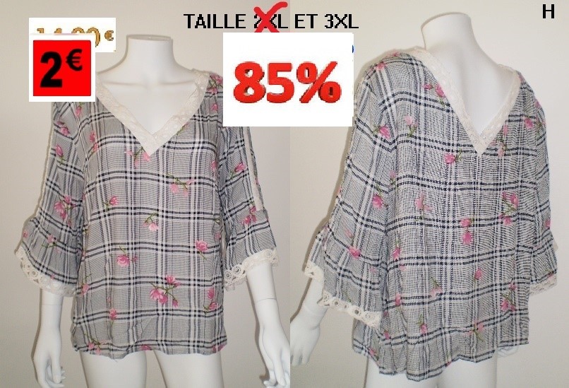 HAUT RAYE N/B FLEUR ROSE taille 3XL
