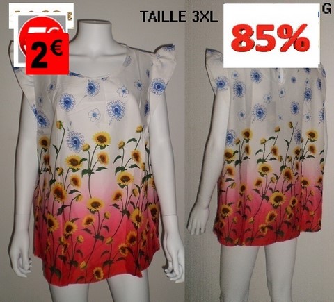 HAUT TOURNESOL FOND ROUGE taille 3XL