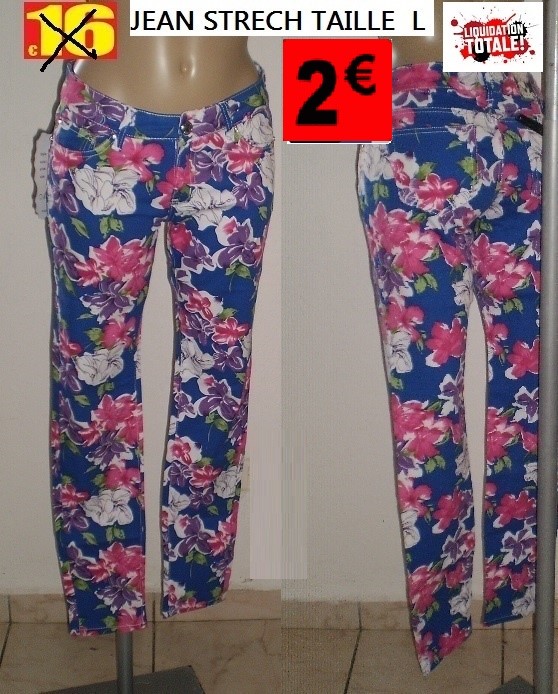 JEAN STRETCH BLEU FLEURI TAILLE L