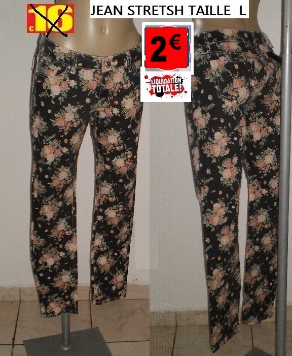 JEAN STRETCH NOIR FLEURI TAILLE L