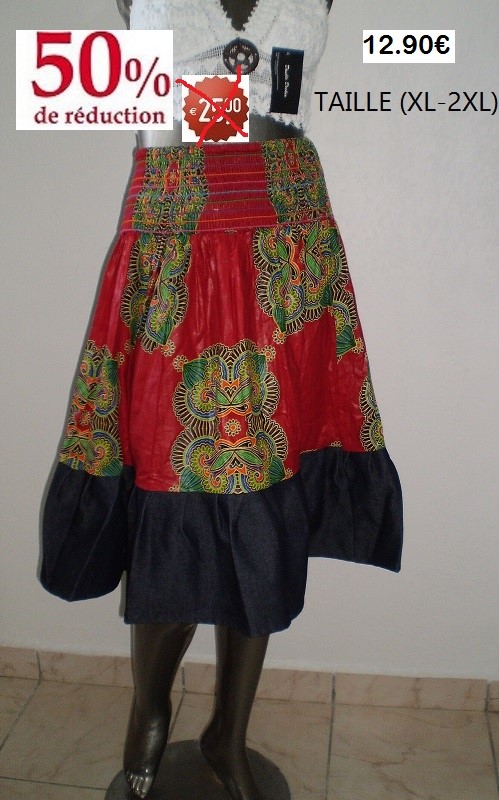 JUPE AF ET JEAN FOND ROUGE TAILLE (XL-2XL)