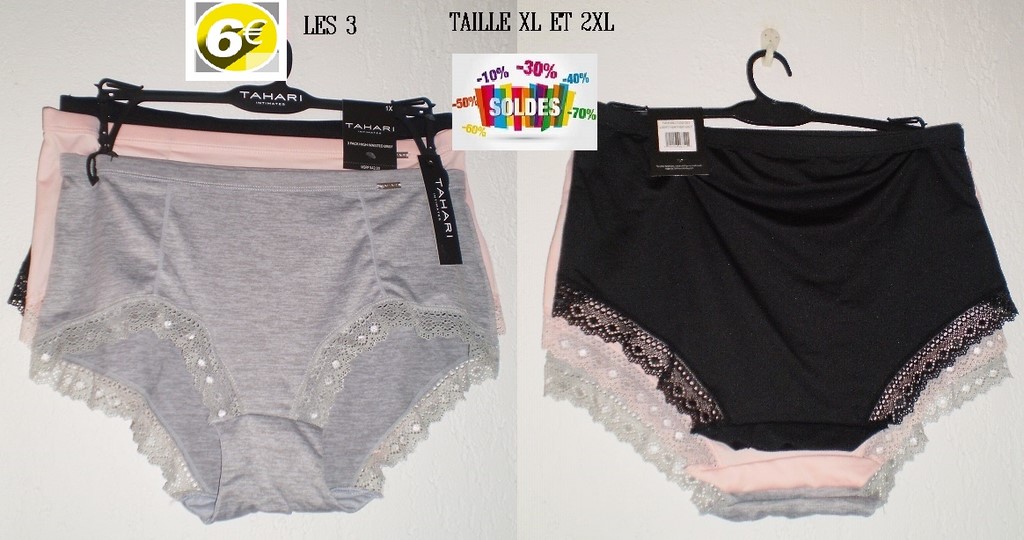 LOT DE 3 CULOTTES NOIR/ROSE GRIS TAILLE XL/2XL