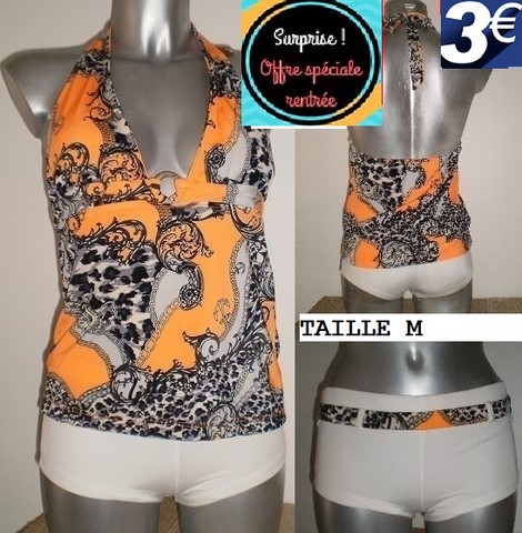 maillot de bain 2 PIECES dos nu orange/ NOIR M