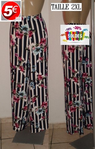 PANT RAYE BLEU/ FLEURS TAILLE 2XL