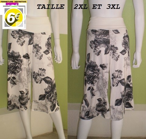 PANTALON AMPLE BLANC FLEURIE TAILLE 2XL ET 3XL