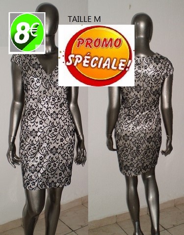 ROBE ARGENTE DENTELLE NOIR TAILLE M