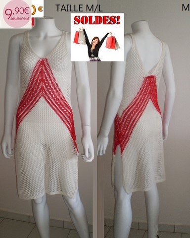 ROBE AU CROCHET BLANC/ROUGE TAILLE M/L