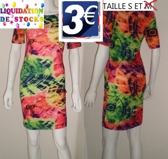 robe bariolee fluo petites manches taille S,M ,L,2XL,3XL ET 4XL