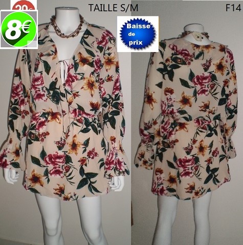 ROBE BEIGE FLEURIE A MANCHE TAILLE S/M