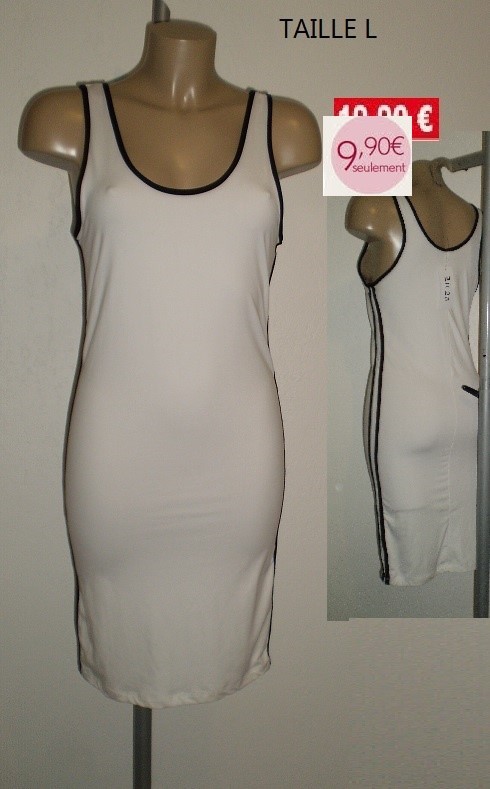 ROBE BLANCHE BANDES NOIRS TAILLE L