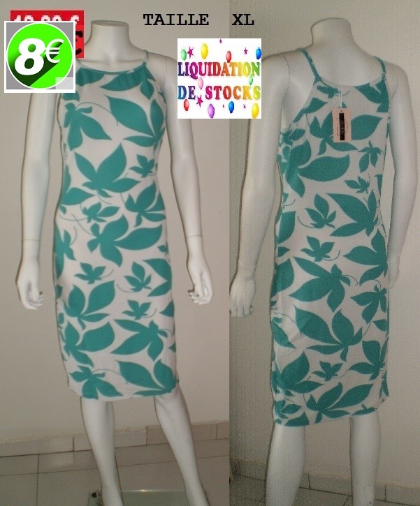 ROBE BLANCHE FLEURES VERTES TAILLE XL