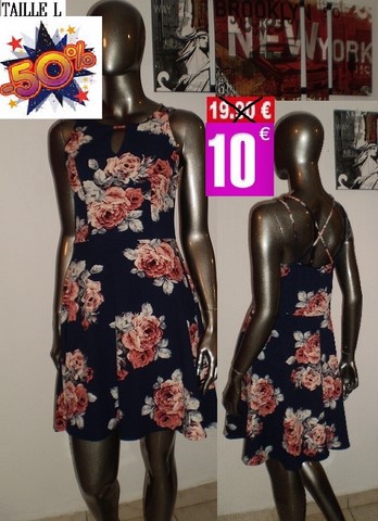 ROBE BLEU FEURIE DOS CROISE TAILLE L ET XL