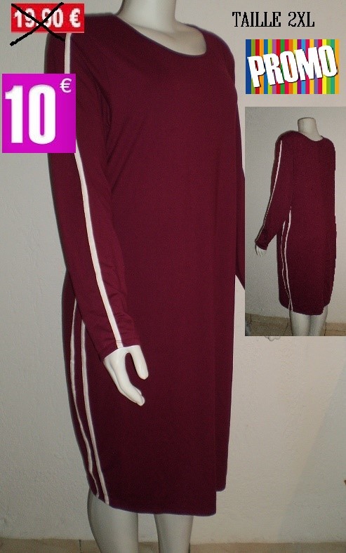 ROBE BORDEAU BANDES BLANCHES TAILLE 2XL