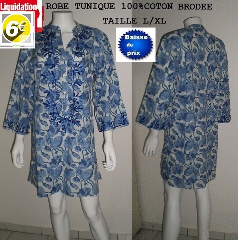 ROBE BRODEE FLEURIE FOND BLEU FONCE TAILLE L/XL
