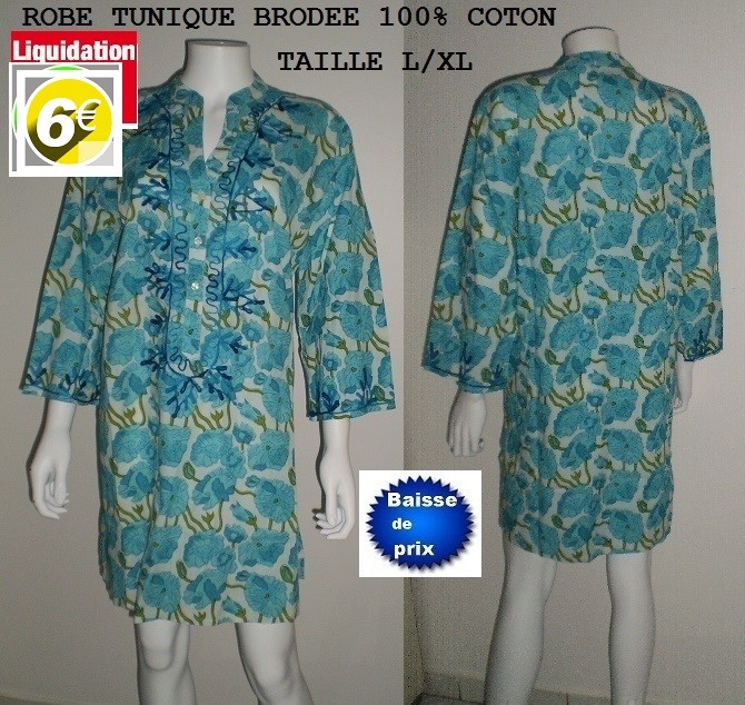 ROBE BRODEE FLEURIE FOND BLEU TAILLE L/XL