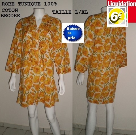 ROBE BRODEE FLEURIE FOND JAUNE TAILLE L/XL