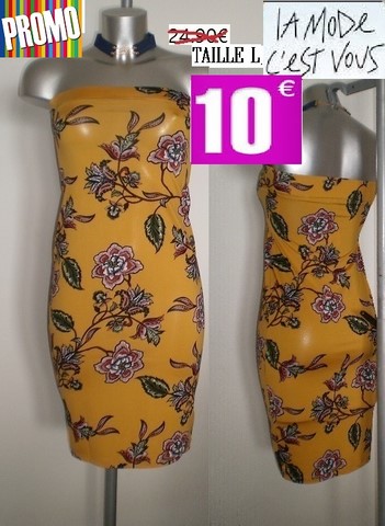 ROBE BUSTIER MOUTARDE FLEURIE TAILLE L