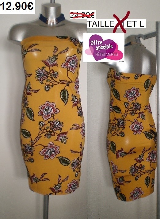 ROBE BUSTIER MOUTARDE FLEURIE TAILLE M ET L