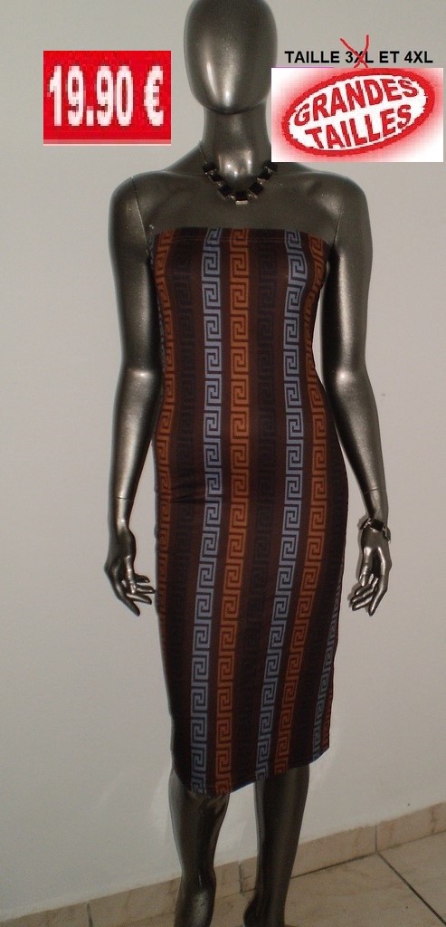 ROBE BUSTIER RAYEE MARRON/BLEU TAILLE 4XL