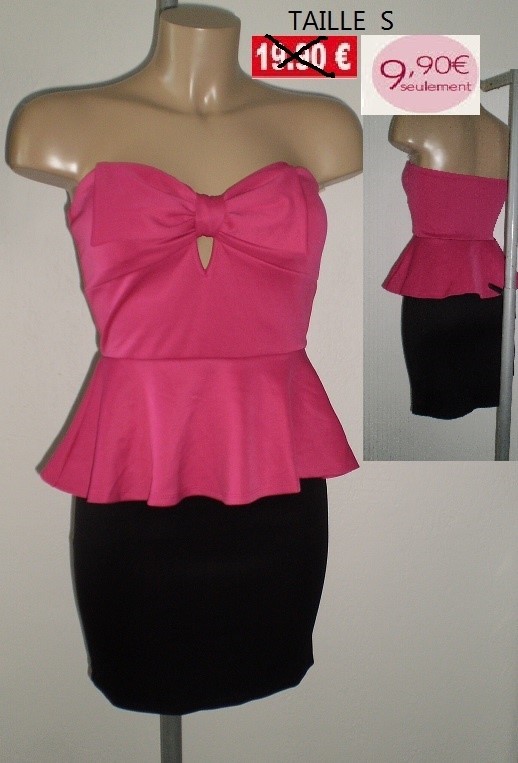 ROBE BUSTIER ROSE/NOIR TAILLE S