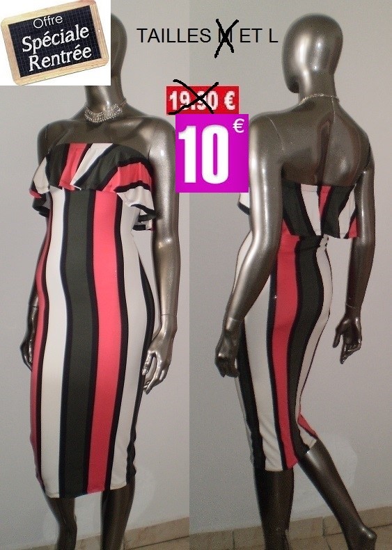 ROBE BUSTIER VOLANT VERT/ROSE TAILLE L