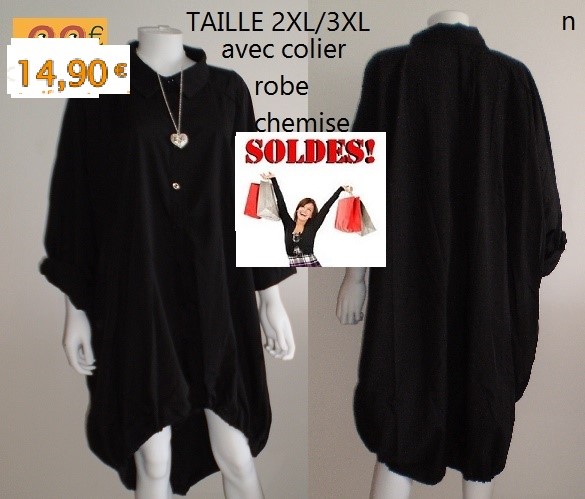 ROBE chemise noir GRANDE TAILLE 2XL/3XL