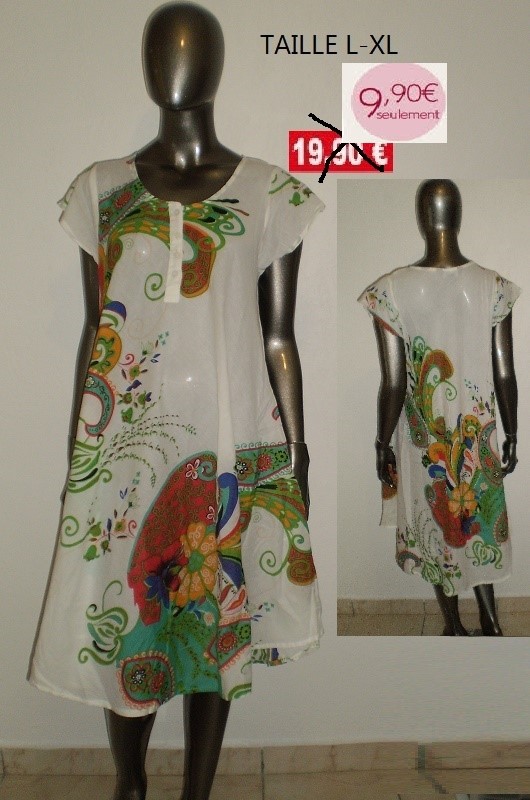 ROBE COTON BLANCHE ET COULEURS TAILLE L-XL