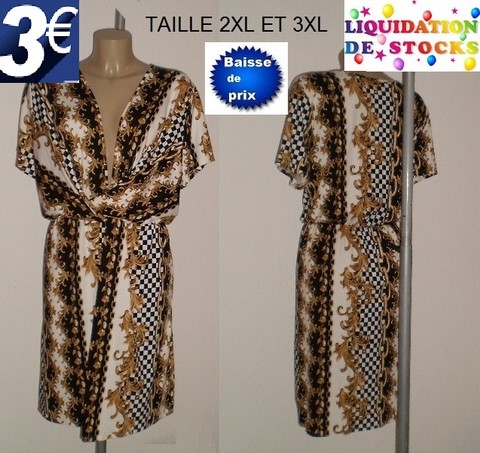 ROBE CROISEE NOIR/OR/BLANC TAILLE 2XL et 3xl