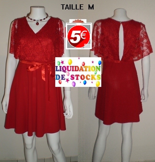 ROBE DENTELLE ROUGE VOLANT TAILLE M