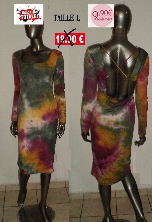 ROBE DO IT KAKI/JAUNE/ROSE A MANCHES TAILLE L