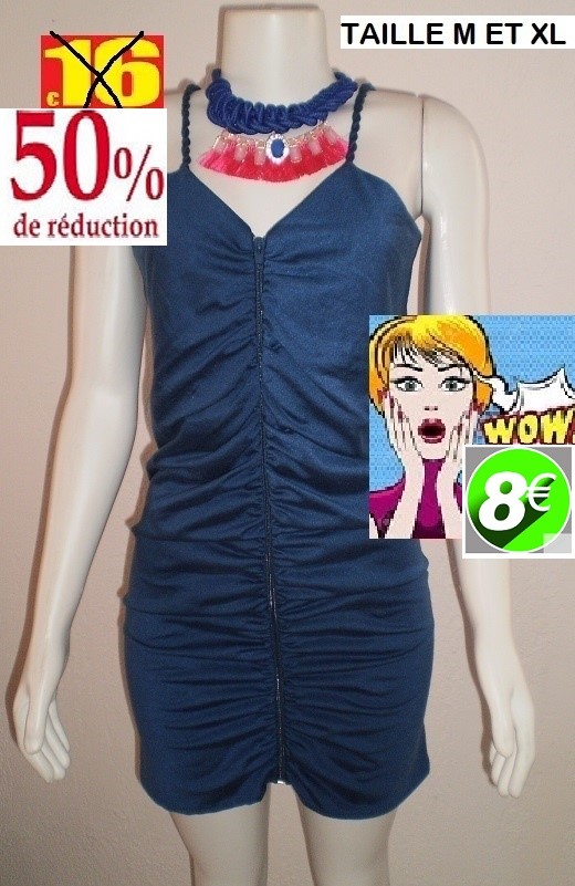 ROBE DRAPPEE BLEU OUVERTURE ZIP DEVANT TAILLE M ET XL