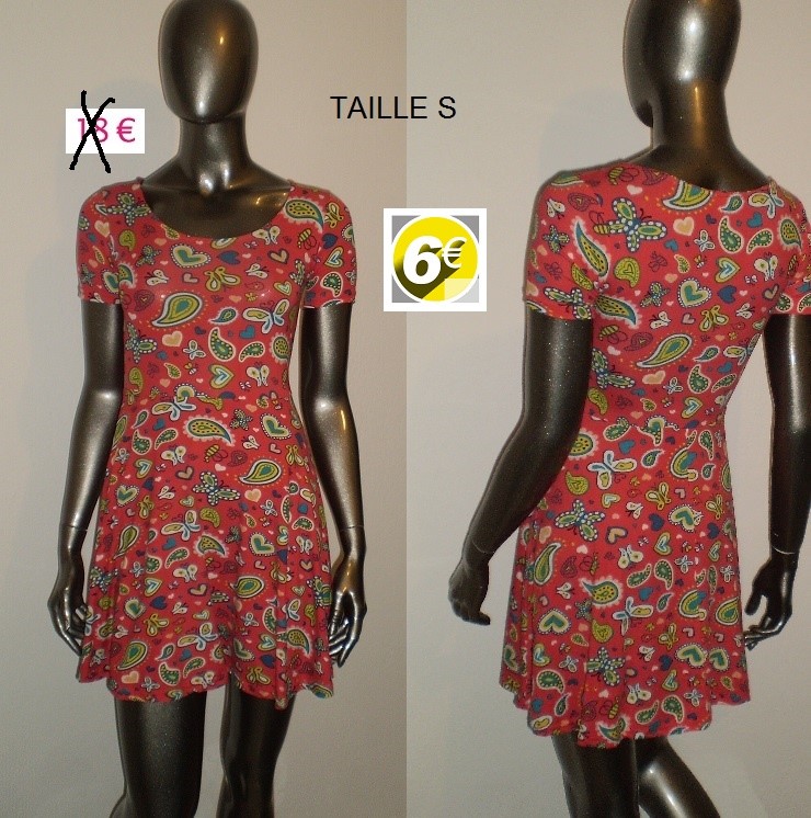 ROBE EVASEE ROUGE/COEUR TAILLE S