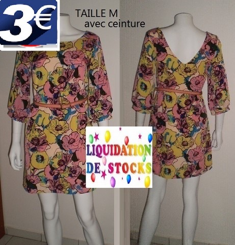 ROBE FLEURIE ET SA CEINTURE ROSE TAILLE M