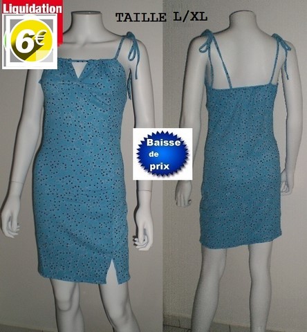 ROBE FLEURIE FENDUE FOND BLEU TAILLE L/XL