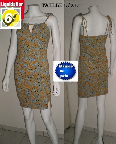 ROBE FLEURIE FENDUE FOND VERT TAILLE L/XL