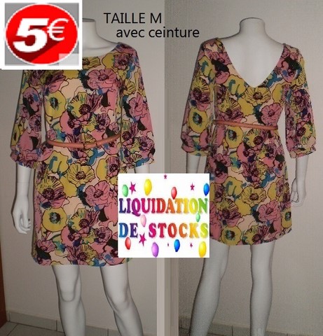 ROBE FLEURIE JAUNE/ROSE +CEINTURE TAILLE M