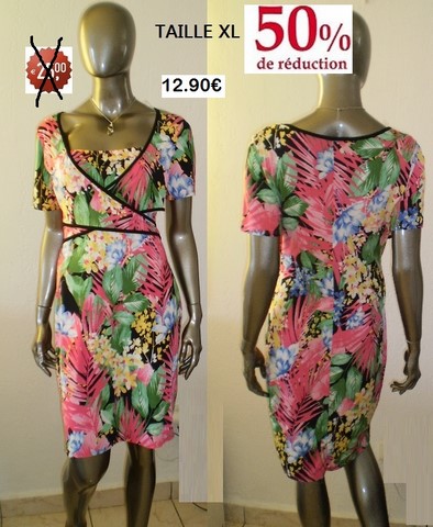 ROBE FLEURS CROISEE FOND ROSE TAILLE XL