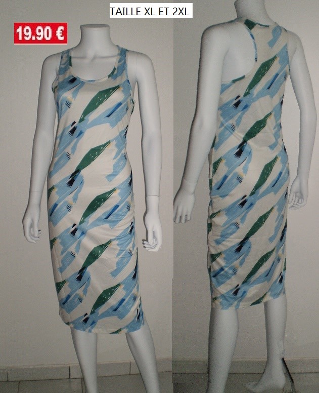 ROBE FOND BLANC TACHES VERT/BLEU TAILLE XL