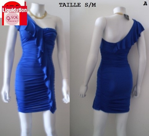 ROBE froncee 1 manche BLEU TAILLE S/M