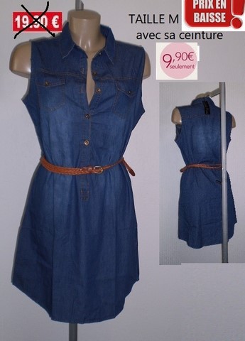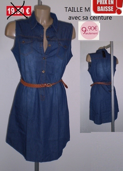 ROBE JEAN SANS MANCHE+CEINTURE TAILLE M ET L