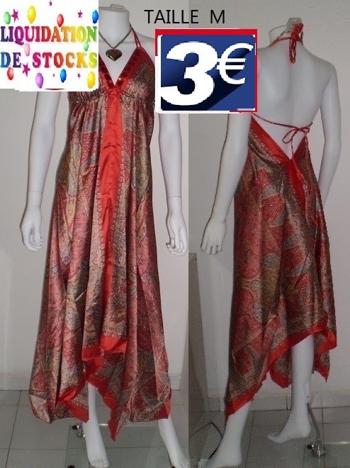 ROBE LONGUE ASSYMETRIQUE FOND ROUGE TAILLE M