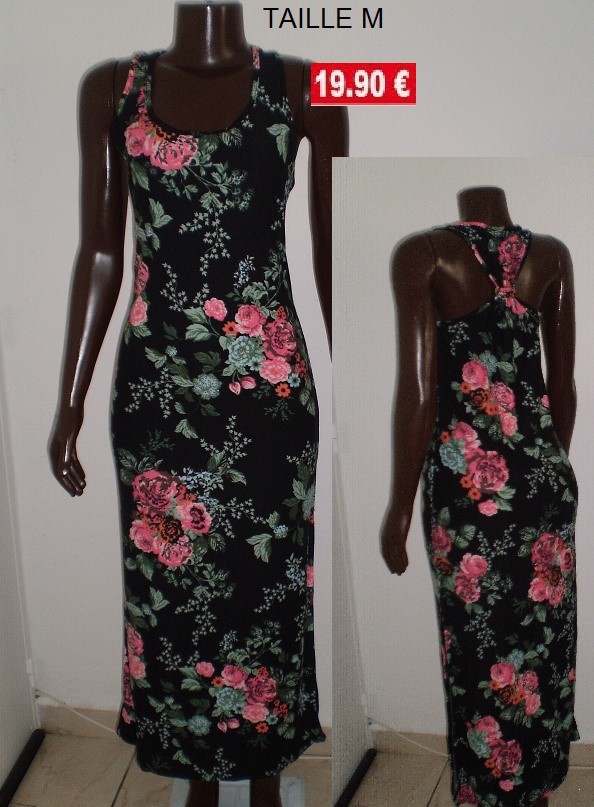 ROBE LONGUE NOIR/FLEUR DOS NAGEUR TAILLE M