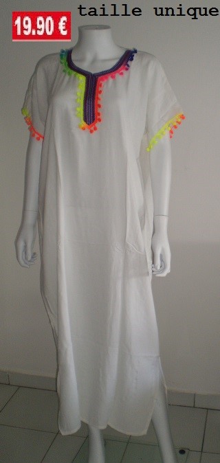 ROBE LONGUE pompons rose taille unique