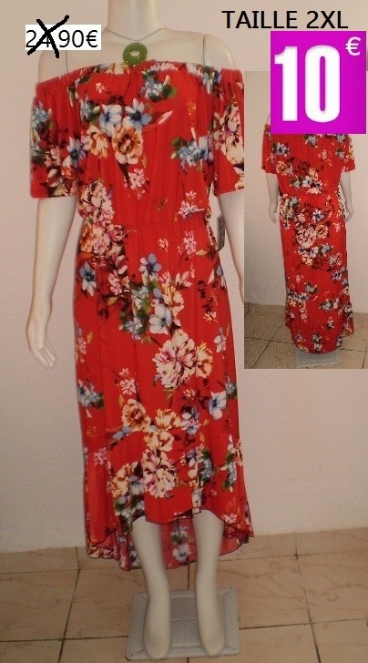 ROBE LONGUE ROUGE FLEURIE TAILLE 2XL