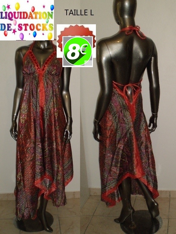 ROBE LONGUE SATIN STRASS ORANGE TAILLE L